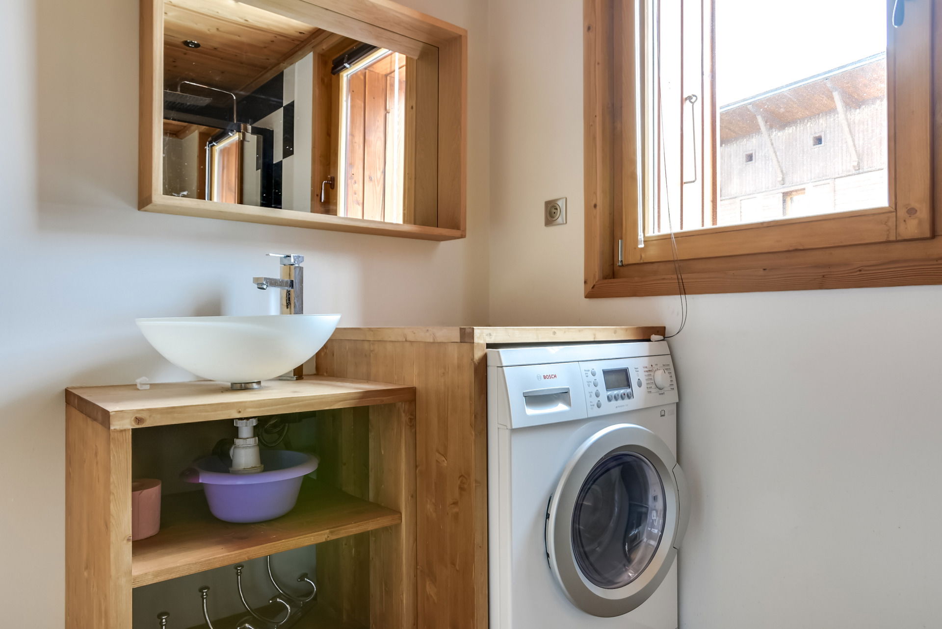 Chalet atmosphere for this ground floor apartment offering great amenities
