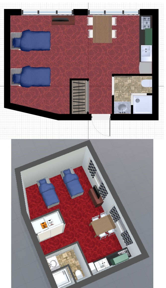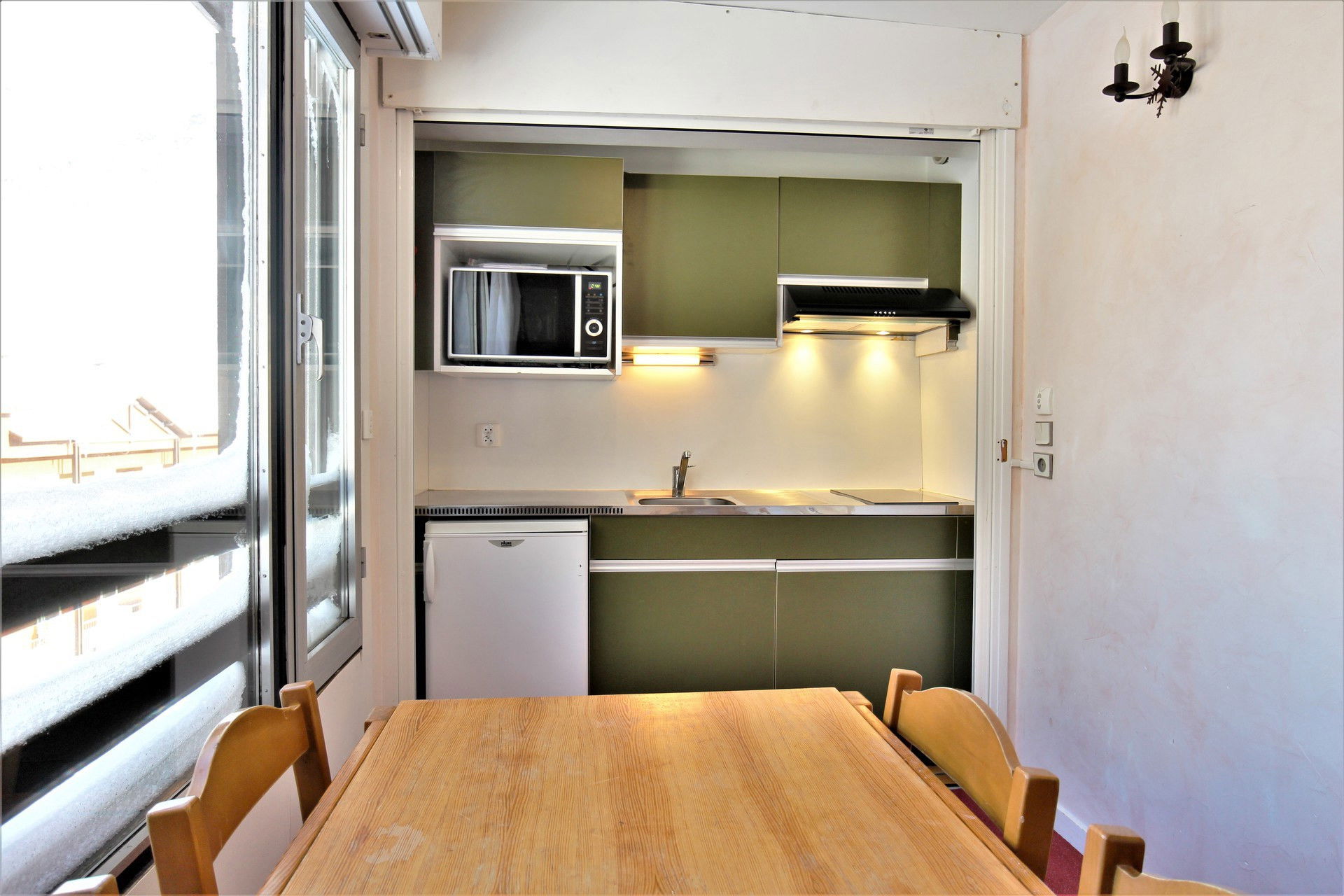 Equipped with microwave oven with grill, ceramic hob, fridge with freezer and electric hood
