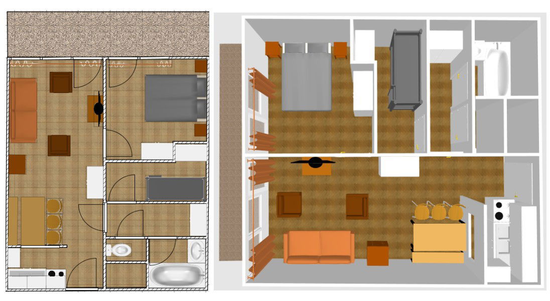 Equipped with dishwasher, electric hob, fridge and omicrowave oven with grill