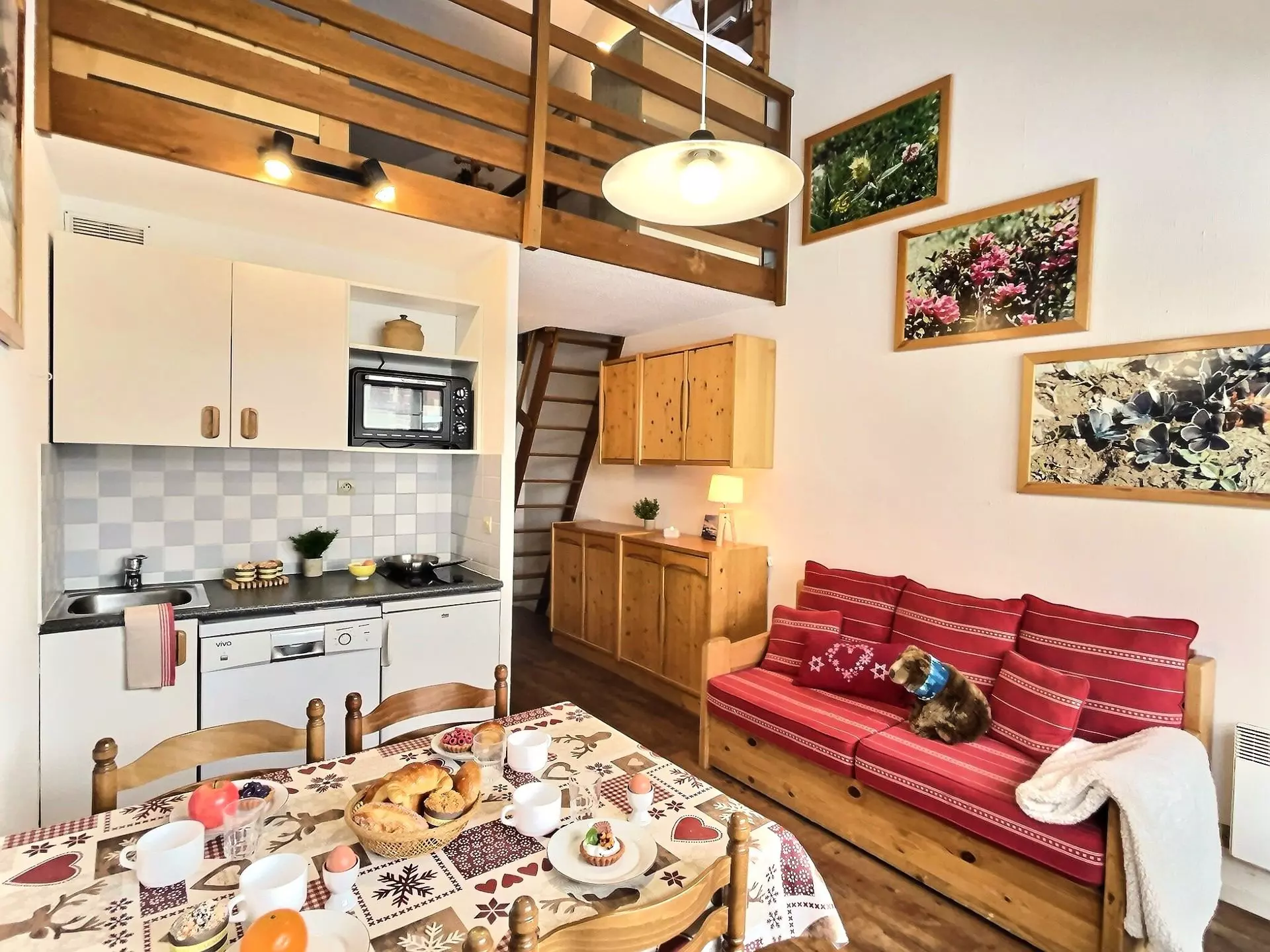 For your ski trip or summer vacation in Val d'Isère, book this comfortable studio with cabin and mezzanine, which benefits from a southwest-facing balcony and mountain views.