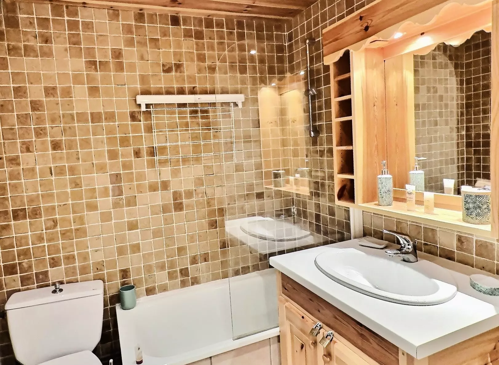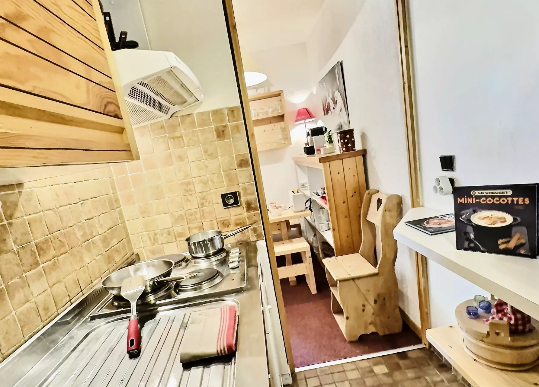 It is fully equipped with electric hobs, an oven, a microwave, a refrigerator and a dishwasher.