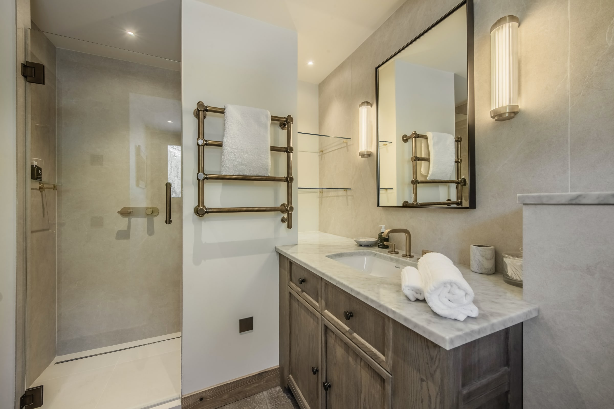 The apartment also includes a ski room and a private underground garage for 2 vehicles, equipped with an electric charging station.