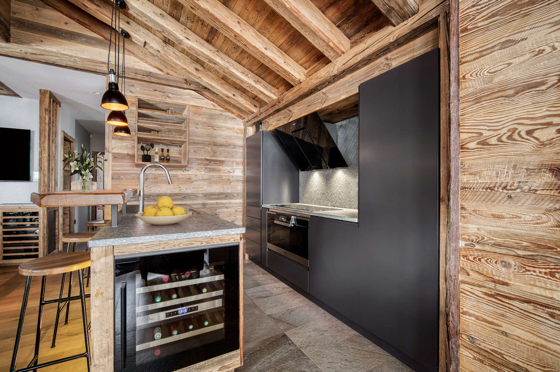 Equipped with fridge, induction hob, oven, microwave oven , dishwasher, hood, wine cooler