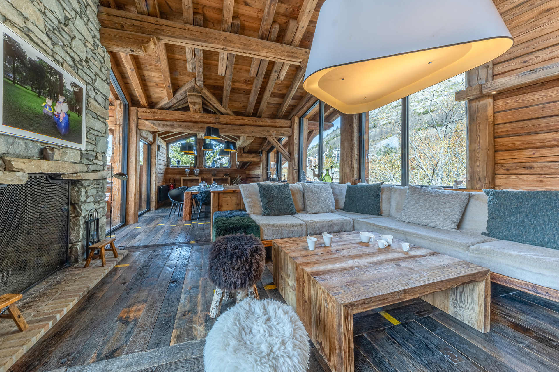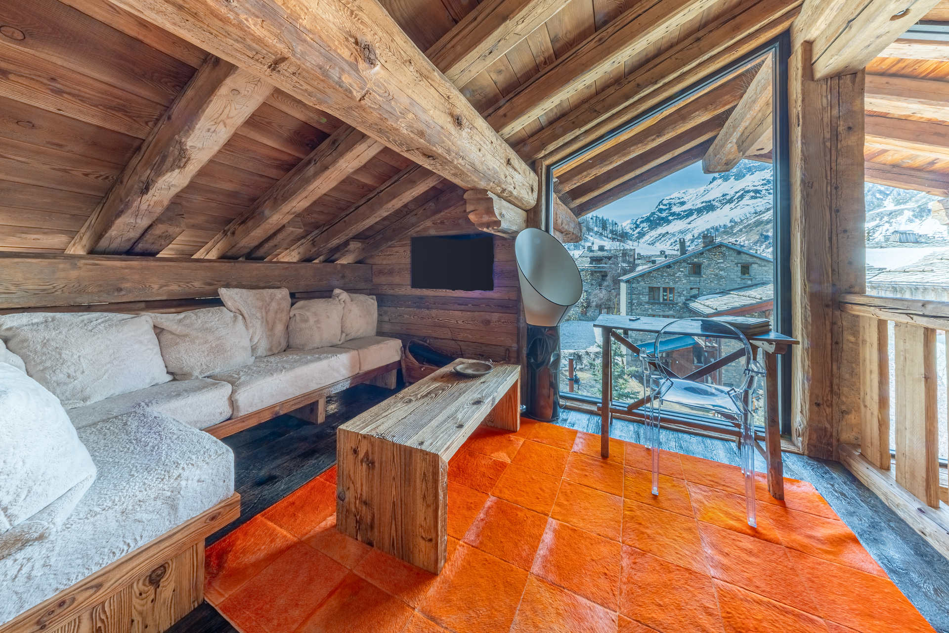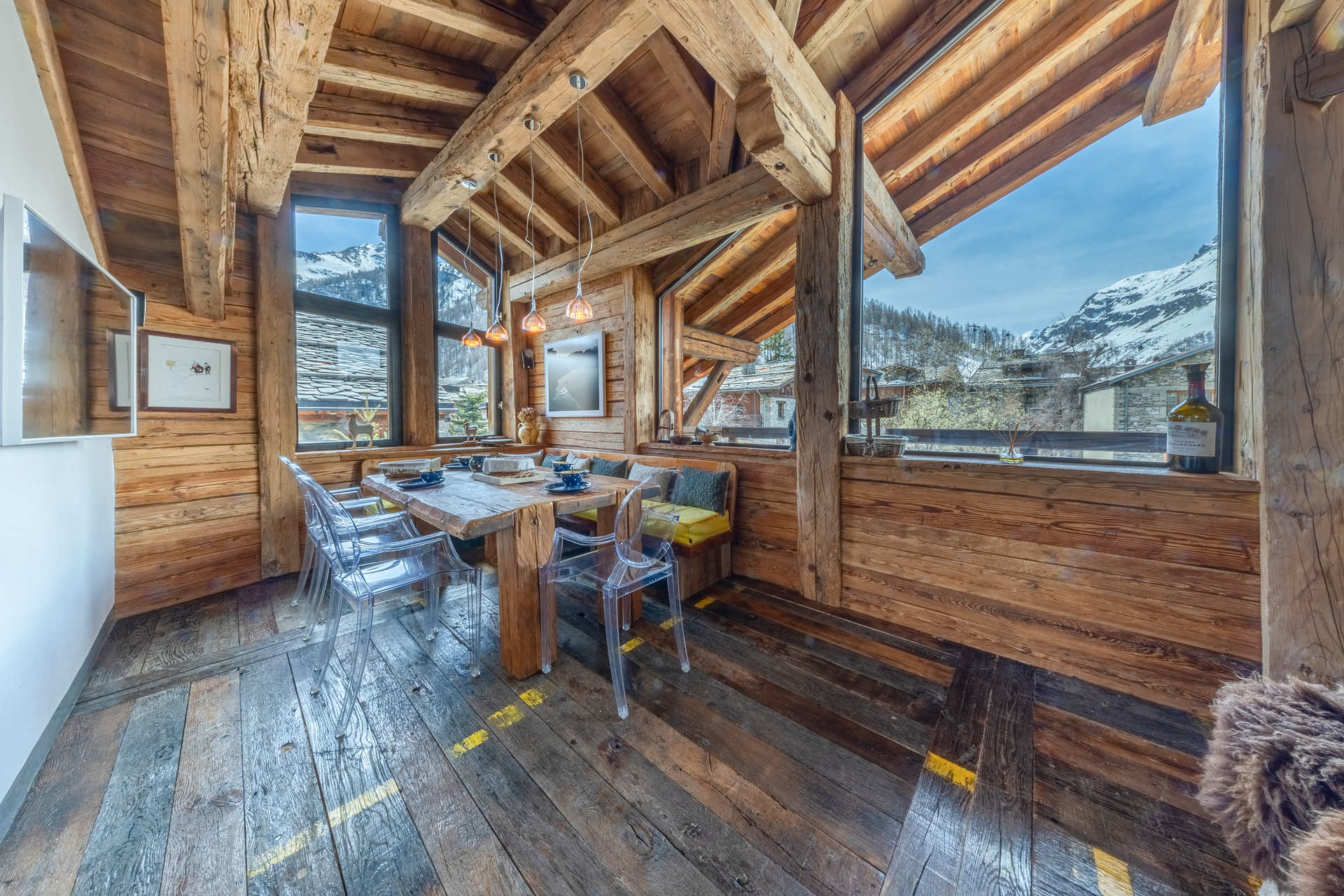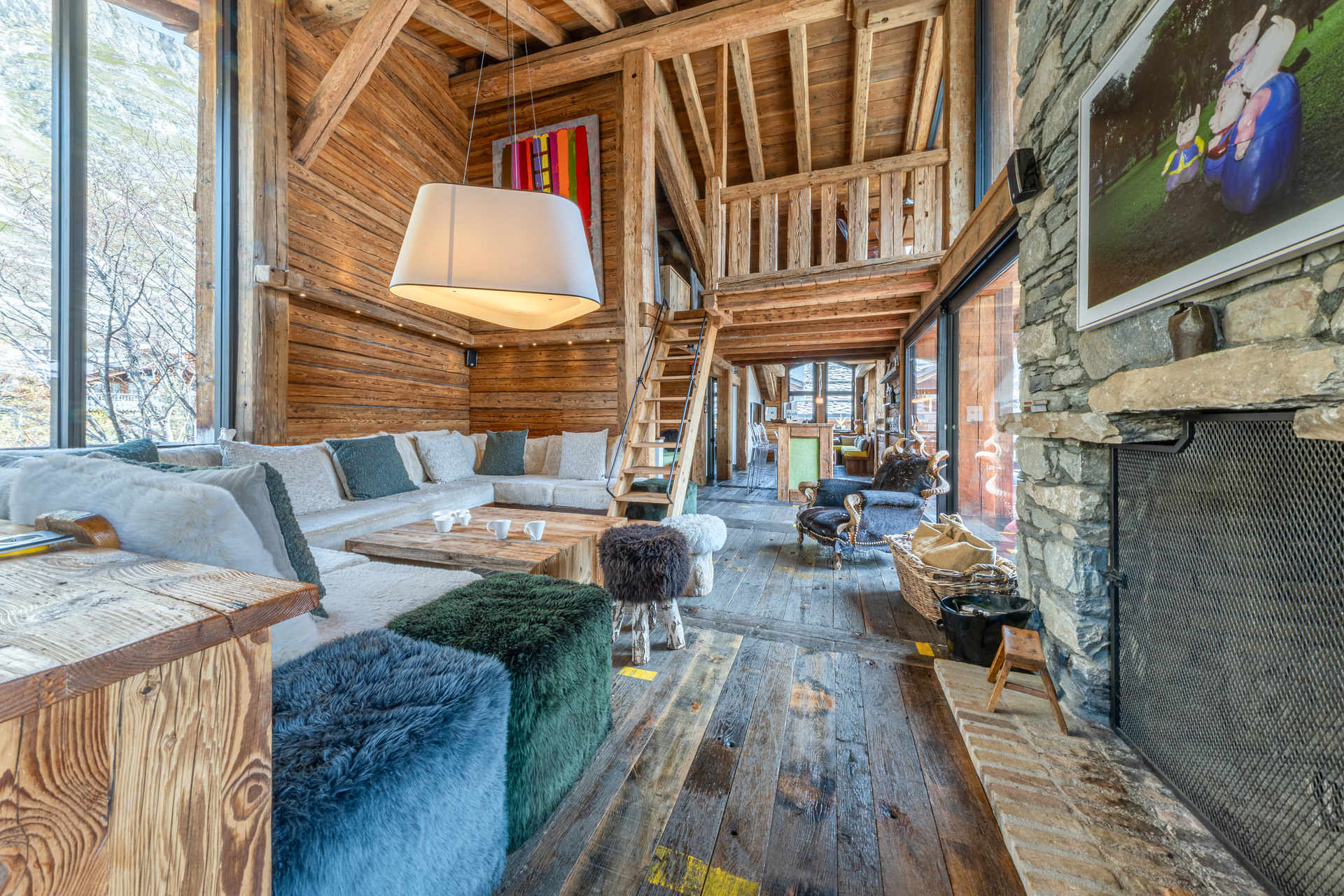 A prestigious independent and substatial chalet of 7 rooms with an interiour decore constructed with reclaimed timber, located in the main high street of the village, with heated swimming pool and hammam. Wonderful view on the old village and the mythic slopes of Bellevarde. Totaling 350 m2 on 4 levels welcoming up to 10 people.