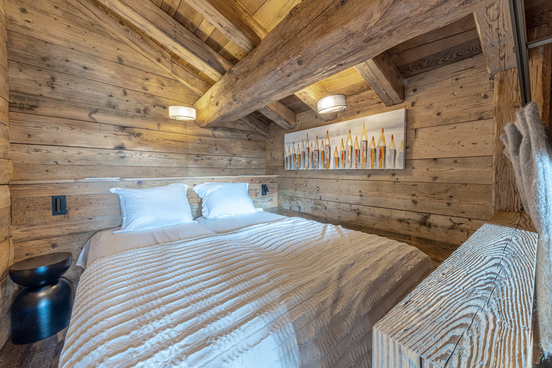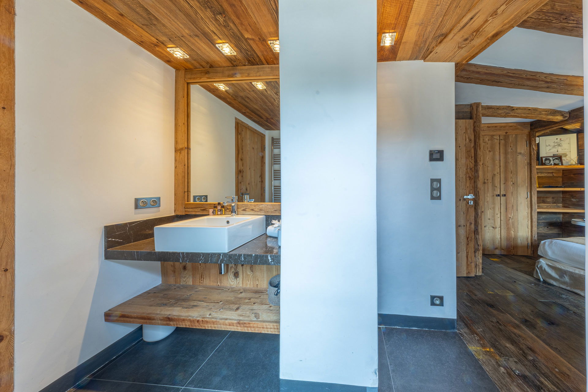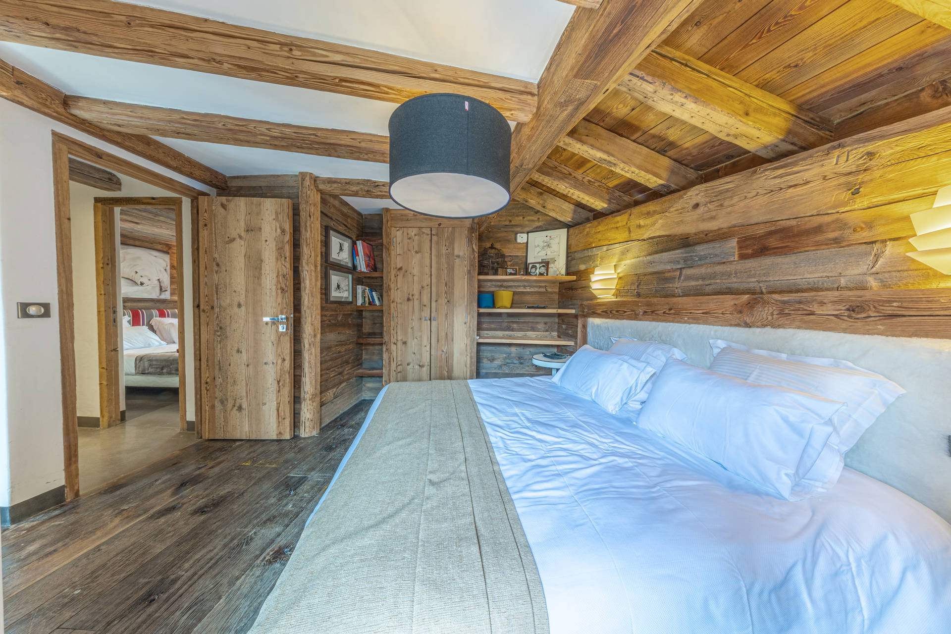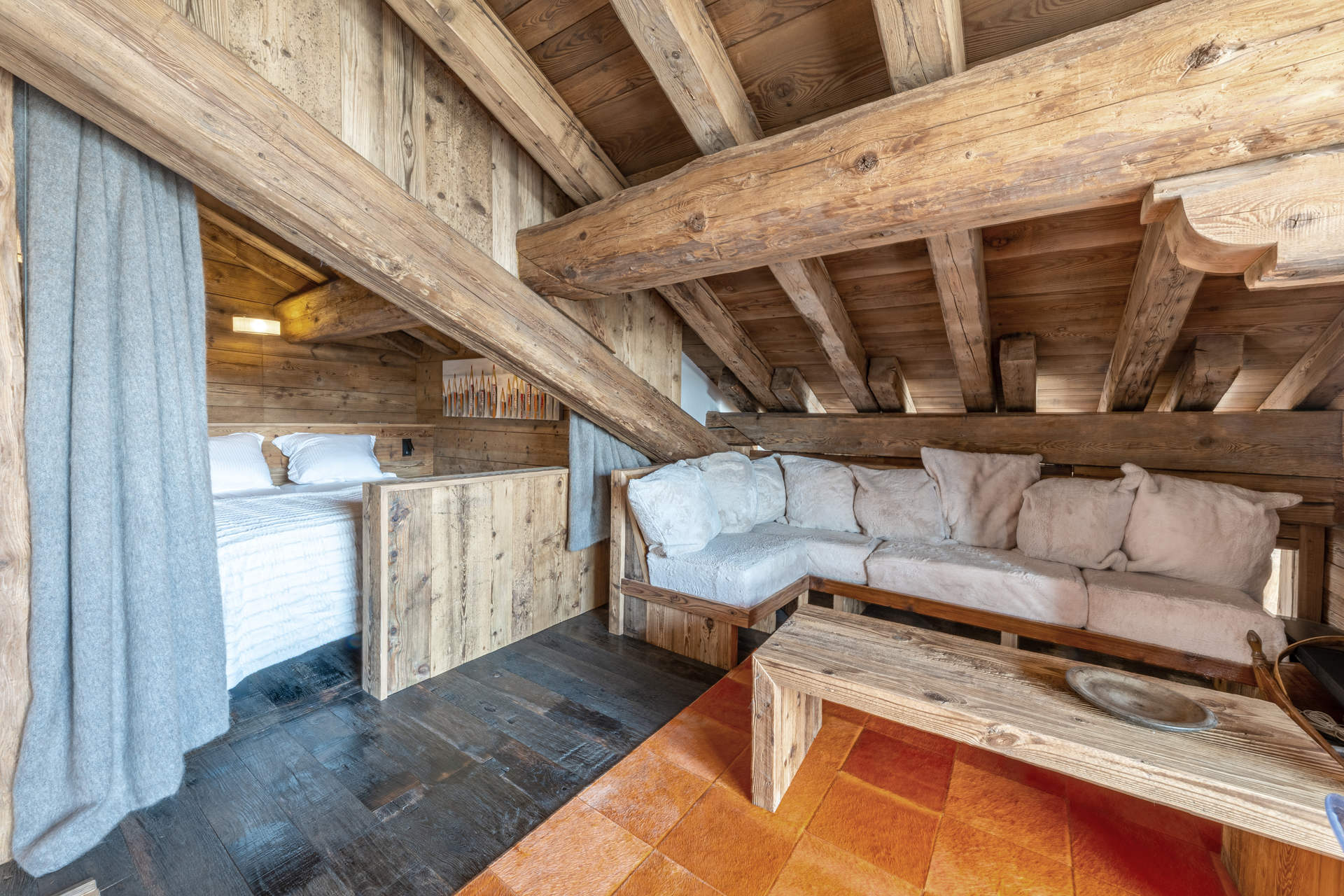 A prestigious independent and substatial chalet of 7 rooms with an interiour decore constructed with reclaimed timber, located in the main high street of the village, with heated swimming pool and hammam. Wonderful view on the old village and the mythic slopes of Bellevarde. Totaling 350 m2 on 4 levels welcoming up to 10 people.