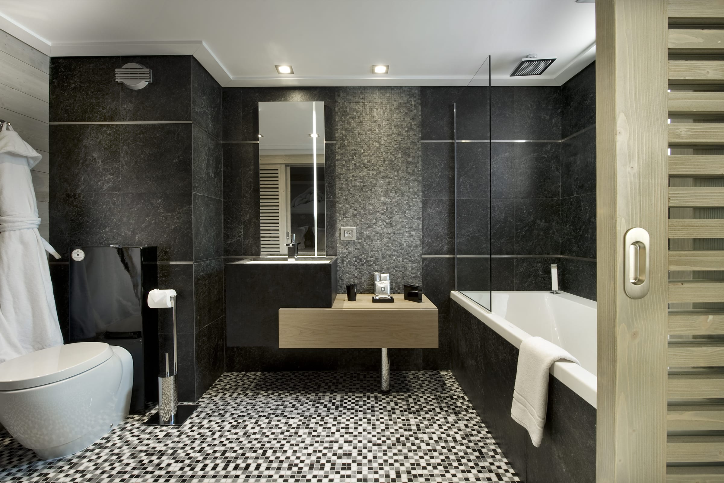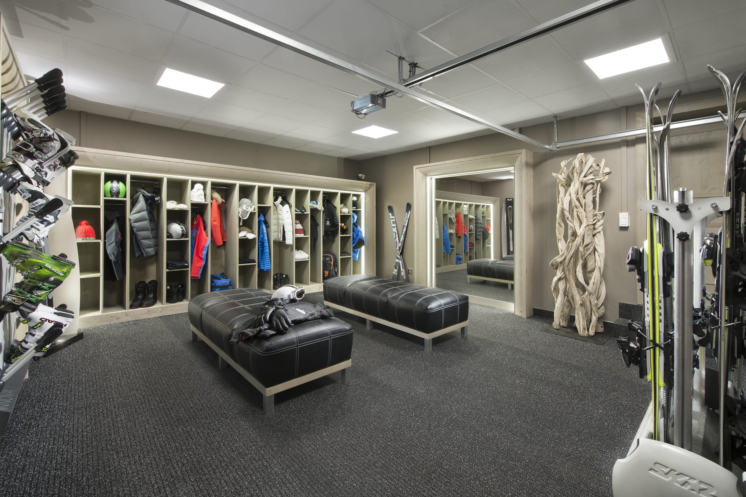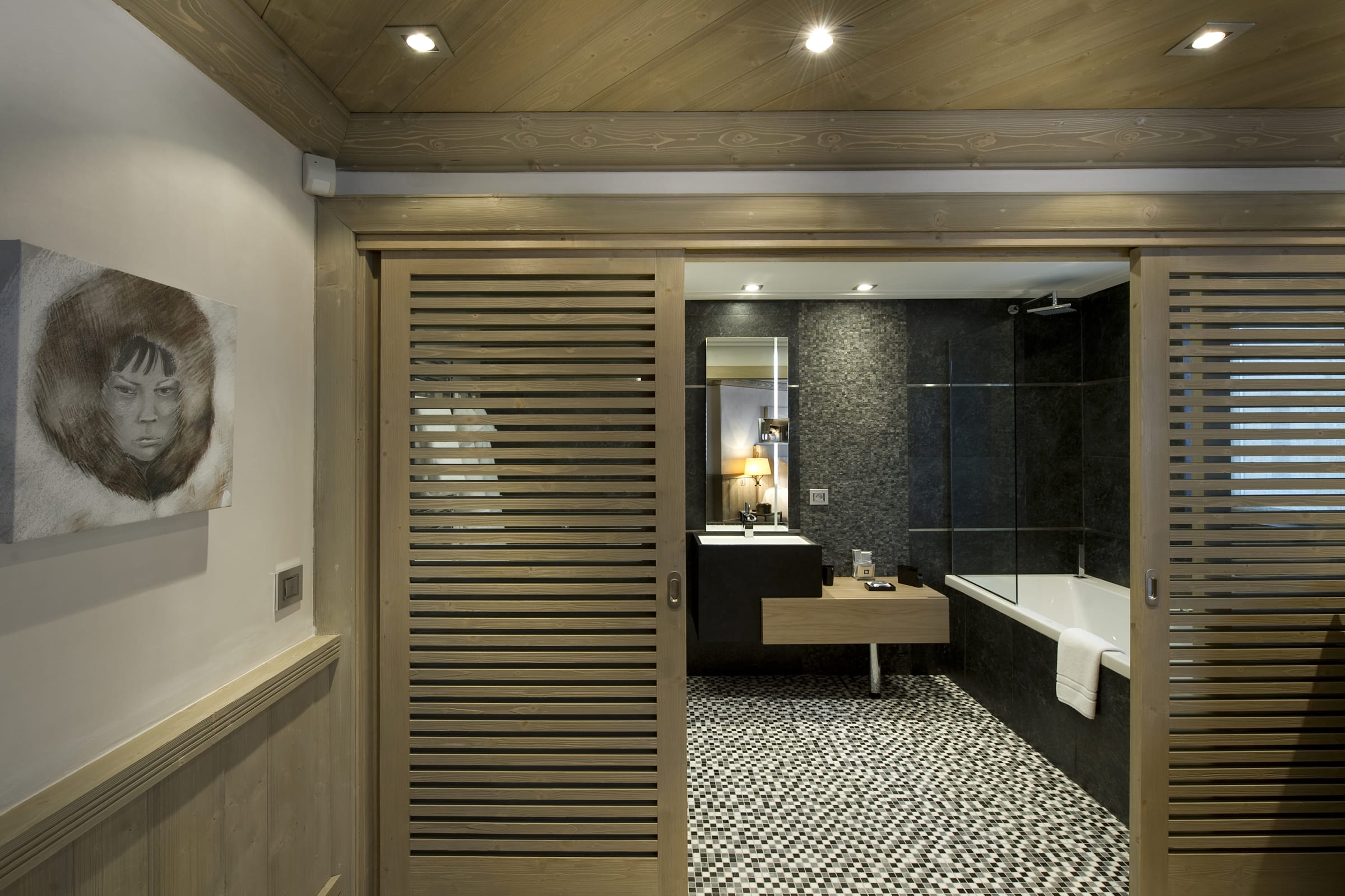 - Level 0, here you can enjoy the water area, splitted between an indoor pool and a steam room. Moreover, a ski room adjoins the water area, furnished with leather seats and a real ski shop design, this is a quite unique offer in the French Alps.