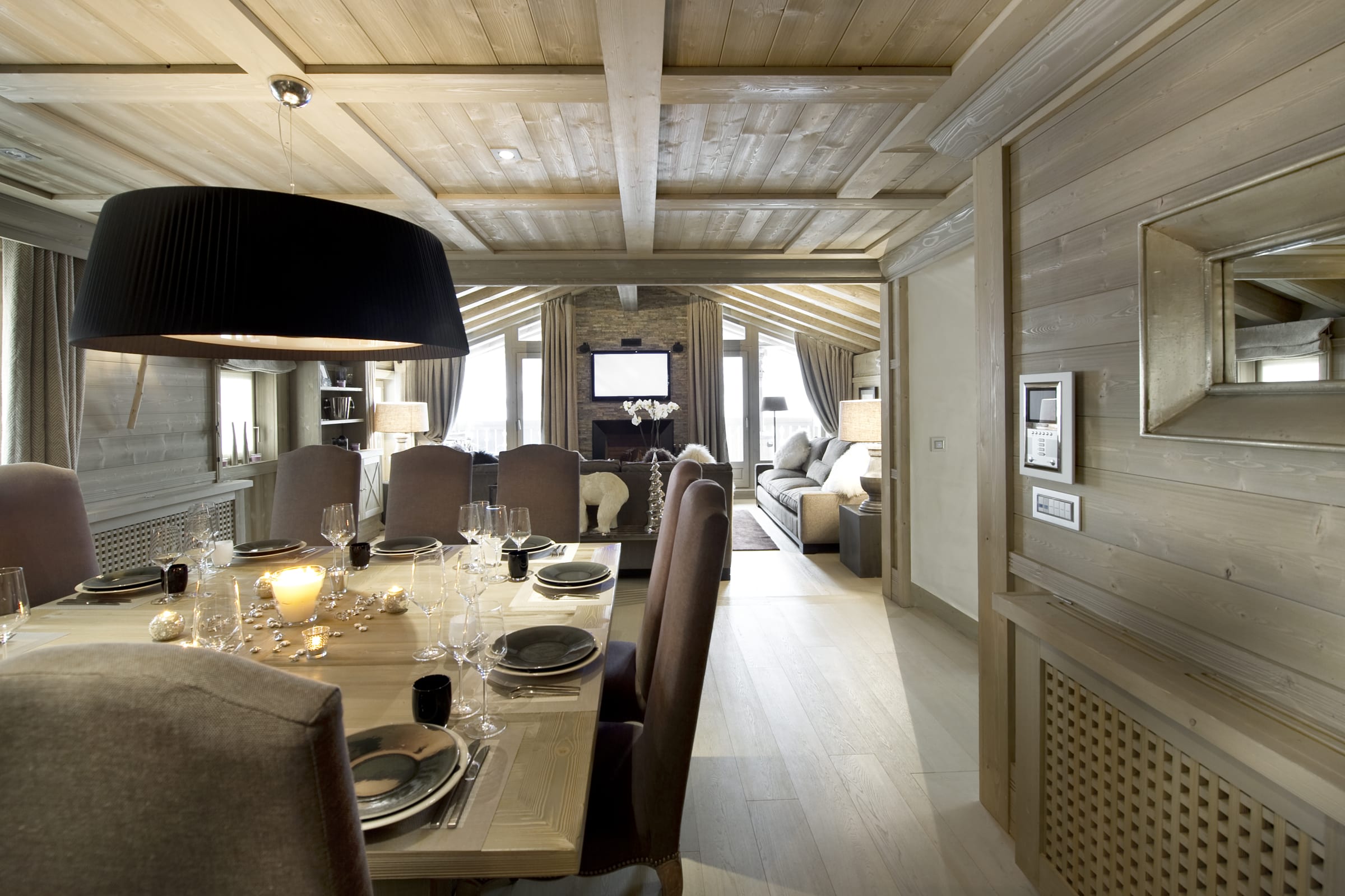 - Level 1 is the main floor of the White Pearl, it is divided in various parts. , a professional kitchen fully equipped, then a luxurious dining room made for 10 people and a great living room built around the fireplace, a typical Savoyard style. This beautiful living room is directly linked to a large deck facing the mountain chains of Val d’Isère. Furthermore, one may find two marvellous en-suites on this floor with king size beds and private bathrooms.